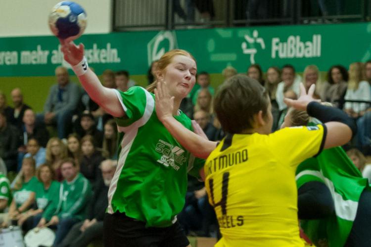 Pia Döpke (links), hier gegen Borussia Dortmund, verlässt Werder Bremen im Sommer nach dann vier Jahren. Foto: Imago Images / foto2press