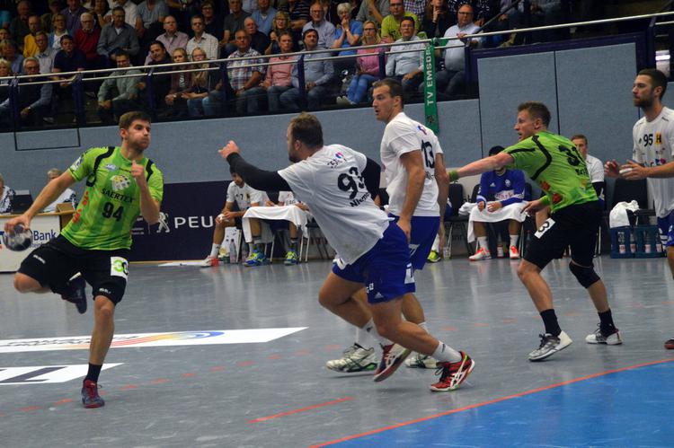 Nicht unbedingt hochklassig ging die Partie los, doch die unglaubliche Intensität beider Mannschaften war von der ersten Sekunde an zu spüren. Eisenach war vor allem körperlich sehr präsent. Der TVE versuchte die bullige Abwehrreihe meistens spielerisch auseinanderzureißen, was in der Anfangsphase mäßig gut gelang. Aber auch der ThSV hatte so seine Schwierigkeiten mit dem Auftakt. Technische Fehler und Unkonzentriertheiten auf beiden Seiten. Die ersten 30 Minuten gingen hin und her. Über 4:4 nach 11 Minuten und 9:9 nach 21 Minuten, sah es gegen Ende der ersten Hälfte so aus als ob die Gäste aus Thüringen sich etwas ansetzen könnten und gingen erstmals mit zwei Toren in Führung (9:11). Durch konzentriertes Deckungsspiel gelang es den TVE zum Pausenpfiff den Abstand zu egalisieren und beiden Mannschaften gingen mit einem 13:13 Unentschieden in die Kabine.