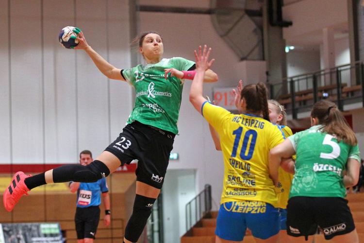 Greta Kavaliauskaité (links), hier gegen den HC Leipzig, setzt auch zukünftig für die Kirchhoferinnen zum Torwurf an. Foto: Imago Images / Beautiful Sports
