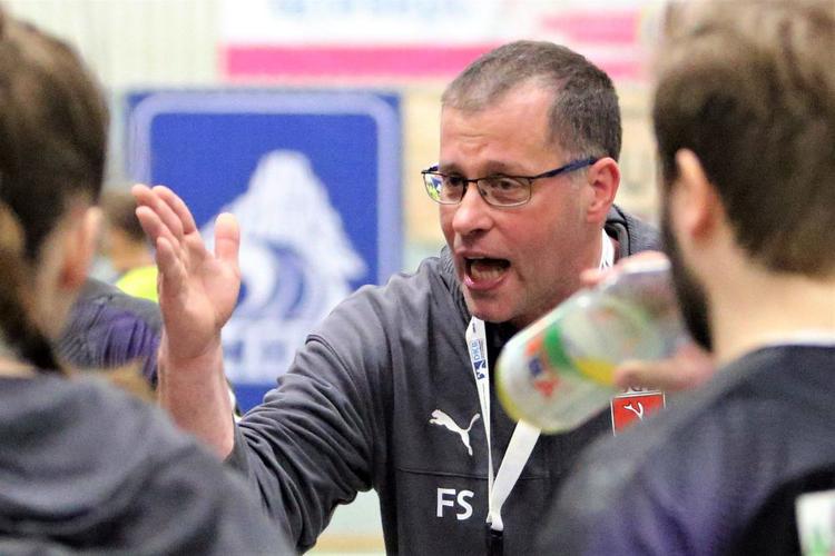 Frank Schmitt gibt seine Kommandos nicht mehr lange im Team-Kreis der SG Leutershausen. Foto: Imago Images / Sportsword