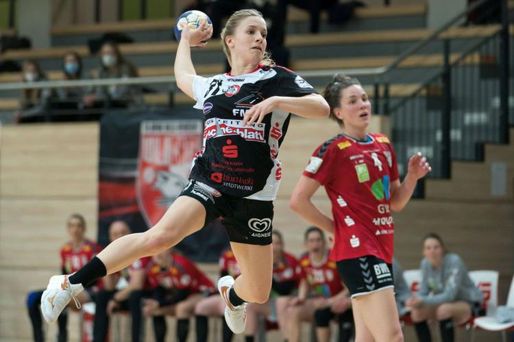 Alexia Hauf wird in den Relegationsspielen nicht zum Torwurf für die Handball-Luchse abheben. Foto: Imago Images / Eibner
