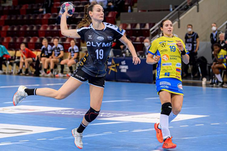 Leonie Patorra (links), die hier vor Louise Burgaard von Metz Handball zum Wurf kommt, wechselt nach Bad Wildungen. Foto: Imago Images / Wolf-Sportfoto