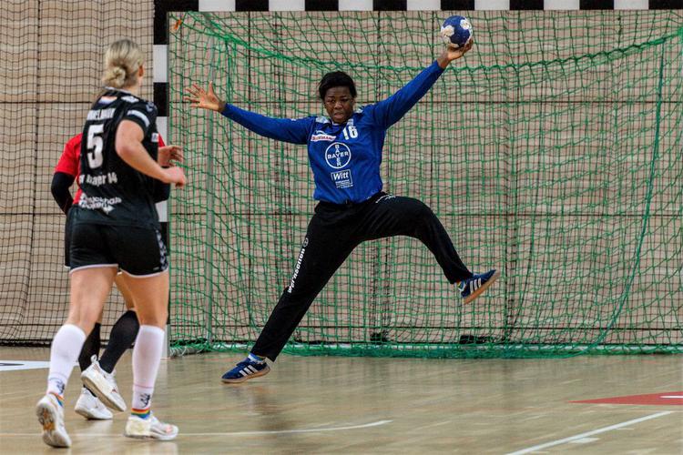 Vanessa Fehr (rechts), die hier einen Siebenmeter pariert, verlässt Leverkusen gen Bensheim/Auerbach.