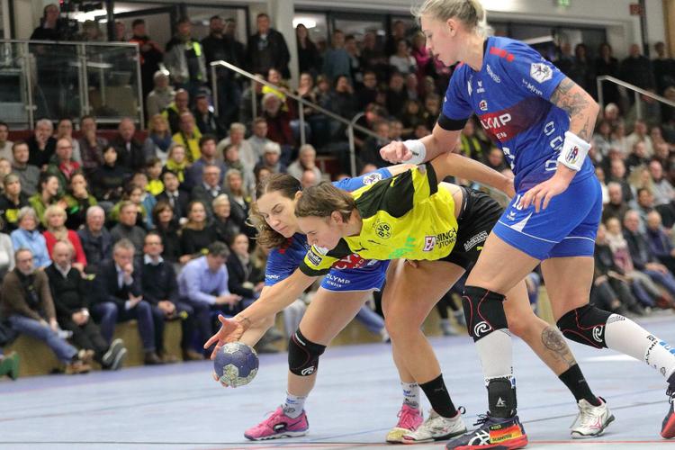 Doch Smits‘ Schützlinge steckten nicht auf. „Dortmund spielt immer mit Druck und wir mussten sie in der Abwehr immer offensiv annehmen, sonst wäre es zu spät“, analysierte Martin Albertsen nach der Partie. Genau das machte sein Team angeführt von Abwehrchefin Maura Visser über weite Strecken der Partie sehr gut, der BVB fand dennoch Lösungen und hatte beim Stande von 19:23 (47‘) und Ballbesitz in Überzahl abermals die Chance, entscheidend zu verkürzen.
