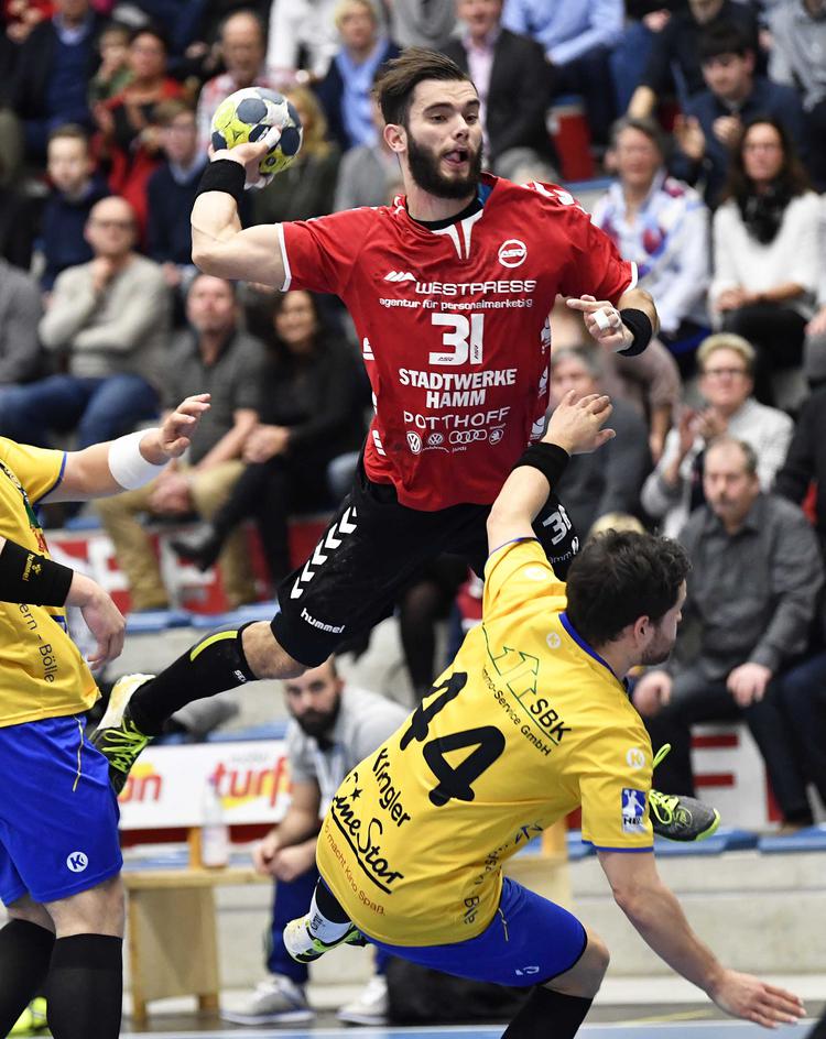 Der ASV Hamm-Westfalen hat das Jahr mit einem weiteren Sieg beendet. Gegen die HSG Konstanz gelang vor 2.129 Zuschauern am späten Dienstag ein verdienter 28:26-Sieg (17:10). Mit diesem Sieg verkürzten die Westfalen, die nun seit sieben Spielen ungeschlagen sind, den Abstand auf Rang drei auf einen Zähler. Zwischenzeitlich sah es wieder einmal nach einem Kantersieg für den ASV an diesem Abend aus, der mit einer äußerst stimmungsvollen Choregraphie der Heimfans begann. Nach etwas mehr als zwanzig ausgeglichenen Spielminuten (9:9) mit wechselnden Führungen erspielte sich die Mannschaft von Kay Rothenpieler eine komfortable 17:10-Halbzeitführung. Doch die weitgereisten Gäste, die schon am Freitag in Dessau antreten mussten, gaben trotz des hohen Rückstands keineswegs auf. Begünstigt von einigen Fehlwürfen der Hausherren verkürzte die HSG innerhalb von weniger als neun Minuten auf 19:17. Spätestens bei diesem Treffer durch Tom Wolf, der mit acht Treffern erfolgreichste Gästetorschütze war, veränderte sich die Körpersprache beim Tabellenletzten sichtbar. Aber die Westfalen konterten, Jakob Schwabe, Lars Gudat, Vyron Papadoplous und Björn Zintel stellten erneute eine Sechs-Tore-Führung her. Aber auch eine Viertelstunde vor dem Ende wollten sich die Gäste nicht geschlagen geben. Nun trafen sie viermal in Folge, ehe Christoph Neuhold das 24:21 markierte. Aber längst war das Spiel offen. Zweimal Tom Wolf und Maximilian Schwarz stellten nun erstmalig seit der ersten Halbzeit wieder ein Unentschieden her (24:24). In der WESTPRESS arena war die Spannung für die Fans greifbar. Die erneute Führung durch Lukas Blohme und Björn Zintel (26:24) sollte dann aber bis zum Ende Bestand haben. "Unterm Strich zählt der Sieg. Ich wusste, dass Konstanz jetzt konstanter spielt als vielleicht noch zu Saisonbeginn. Deswegen wusste ich, dass es gefährlich wird, wenn du zu nachlässig wirst. Bei 24:24 wurde es noch richtig knapp. Wir haben dann mit dem siebten Feldspieler gearbeitet und das hat funktioniert. Unter dem Strich bin ich zufrieden", meinte Trainer Kay Rothenpieler. HSG-Coach Daniel Eblen meinte: "Glückwunsch an des ASV zum Sieg und auch zur gesamten Vorrunde. Wenn wir die Leistung brauchen, kriegen wir sie im Moment nicht hundertprozentig auf den Platz, verlieren dann am Ende knapp. Wir haben heute vor allem in der zweiten Hälfte ein richtig gutes Spiel gemacht. Die Jungs bleiben immer dabei und haben sich heute fast belohnt. Mit der Leistung kann ich heute zufrieden sein. Jetzt freuden wir uns alle auf die Pause, vor allem nach den zwei Reisen nach Dessau und Hamm." Quelle: PM ASV Hamm-Westfalen
