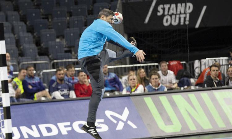 Notfalls auch mit seinem Kopf, wird Henning Fritz in den letzten fünf Saisonspielen die Bälle abwehren, die auf das Gehäuse der SG Flensburg-Handewitt kommen. Foto: Imago Images / Eduard Bopp