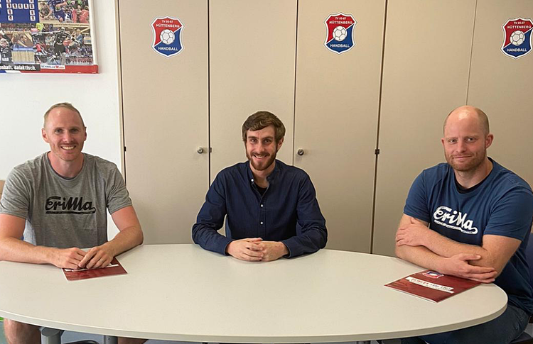 Zwei neue Eckpfeiler für das Kompetenzteam. Flo Laudt (l.) und Andi Scholz (r.) mit Geschäftsführer Fabian Friedrich in der Geschäftsstelle des TVH.