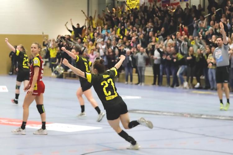 Die BVB Handball Damen haben es beim 21:21 (12:9) äußerst spannend gemacht und gegen die HSG Bensheim/Auerbach immerhin noch einen Punkt im Ruhrgebiet behalten. Wenige Sekunden vor Schluss traf Rechtsaußen Asuka Fujita zum Endstand und sicherte ihren Farben das Unentschieden. Für die Borussia, die seit dem 14:14-Ausgleich der Gäste in der 42. Minute nicht mehr in Führung gelegen hatte, fühlt sich das Ergebnis eher wie ein gewonnener Punkt an, auch wenn BVB-Coach Gino Smits nicht mit dem offensiven Auftreten seiner Mannschaft zufrieden sein konnte: „Mit 21 Gegentoren gewinnst du normalerweise. Aber wir haben uns vorne über das gesamte Spiel schwergetan. Wir hatten zu viele technische Fehler und haben in der zweiten Halbzeit zu viele Gegentore über den Gegenstoß bekommen“, analysierte der Niederländer die Partie.