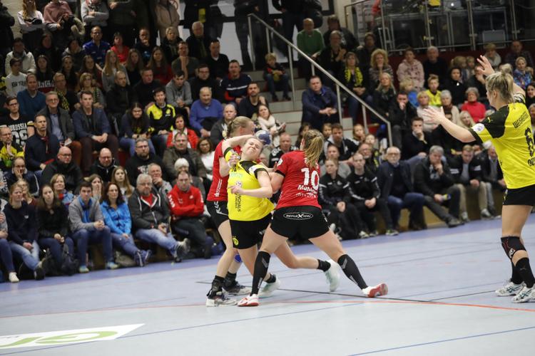 BVB-Coach Gino Smits musste auf insgesamt sieben Spielerinnen verzichten und hatte deshalb Probleme, in die Partie zu finden. „Wir waren gut eingestellt, wussten, dass Dortmund vorne mit zwei Kreisläuferinnen und in der Abwehr mit einer offensiveren Variante auf der Halbposition spielen würde“, analysierte Bad Wildungens Trainerin Tessa Bremmer nach der Partie. Die Schwarzgelben agierten zu Beginn der Partie zu passiv und konnten vorne ihre Chancen nicht nutzen. Nach 24 Minuten lagen die Gäste daher mit 11:6 in Front, dann ließ Smits seine „jungen Wilden“ von der Leine: Angeführt von Spielmacherin Hannah Kriese holte ein BVB-Rückraum, in dem die 18-Jährige Leonie Kockel die älteste Spielerin war, in den fünf Minuten vor der Pause Tor um Tor auf und ging noch vor dem Seitenwechsel sogar mit 12:11 in Führung. Der BVB agierte nun deutlich dynamischer und aggressiver in der Abwehr, hier machte sich das Comeback von Saskia Weisheitel bemerkbar, die die Deckung stabilisierte. Angetrieben vom lautstarken Publikum in der gut gefüllten Bleichsteinhalle in Herdecke starteten die Borussinnen einen Lauf, auf den die Gäste vorerst keine Antwort fanden:Zehn Minuten vor Schluss stellte die bärenstarke Asuka Fujita auf 19:13 für ihre Farben. Die Dortmunderinnen nutzten nun ihre Chancen und gingen gegen die mit nur neun Feldspielerinnen dünn besetzten Gäste konsequent ins Tempospiel.