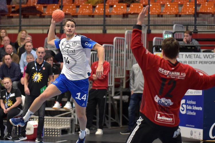 Ian Hüter (links), hier beim Torwurf gegen Peter Tatai von Nettelstedt-Lübbecke, bleibt Bayer Dormagen erhalten. Foto: Imago Images / PMK