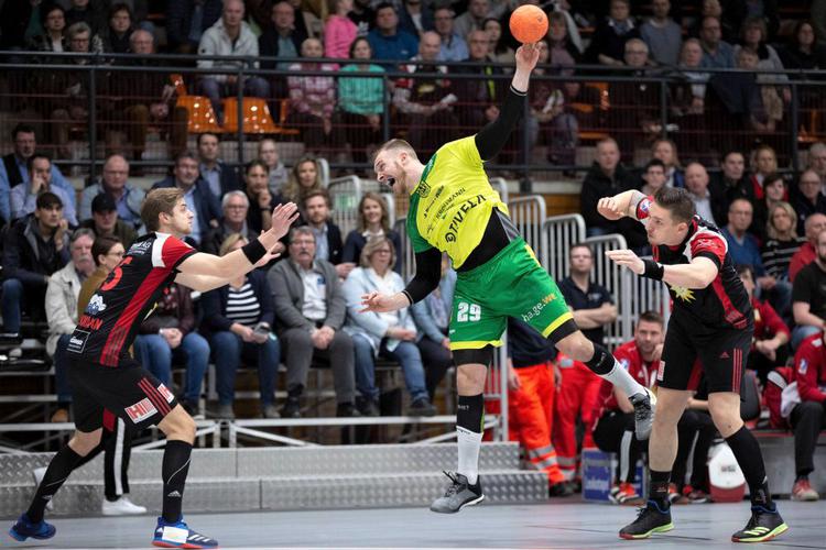 Tim Stefan (Mitte), hier beim Torwurf gegen Nettelstedt-Lübbecke, bleibt Eintracht Hagen treu. Foto: Imago Images / Noah Wedel