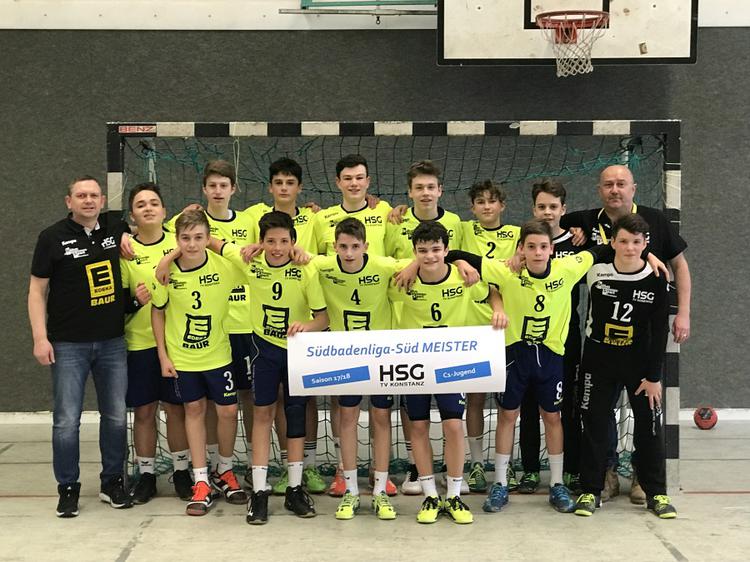 18 Spiele, 18 Siege, 538:336 Tore: Die C1-Jugend der HSG Konstanz sicherte sich überlegen und mit großem Vorsprung den Meistertitel der Südbadenliga Süd. Das Team von Matthias Pagels und Sebastian Bösing war trotz diverser Abstellungen für verschiedene Auswahlmannschaften das Maß der Dinge und ließ mit Abstand die wenigsten Gegentreffer der Liga zu. Dass beim nun bevorstehenden Final Four am Samstag nicht wie vorgesehen in Konstanz, sondern in Helmlingen gespielt wird, liegt zum einen am Superball, aber auch daran, dass die Gastmannschaften nicht am Sonntag in Konstanz spielen wollten.