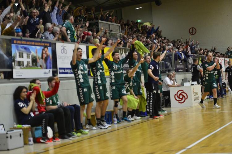 Die letzten drei Minuten sind dann Herzschlag-Finale pur. Dansenbergs Bester, Loic Laurent, bringt den TuS mit seinem neunten Treffer auf 26:25 (Min. 57:03) heran, Jan Clausen versenkt das Leder vorbei am guten Darius Jonczyk zum 26:26-Ausgleich. Auf der Uhr sind noch exakt 59 Sekunden zu spielen, als Philipp Kessler in seiner letzten Auszeit den entscheidenden Spielzug ansagt. Peter Walz, bis dahin überwiegend im Rückraum aktiv, wechselt an den Kreis und verwertet das Grbavac-Anspiel zum 27:26. Ein wenig Zeit bleibt den Gästen noch für den Ausgleich. Peter de Hooge nimmt noch mal eine Auszeit, bringt den siebten Feldspieler. 14 Sekunden sind noch Rest – aber sie kommen nicht mehr in eine Wurfposition und die Stadtgartenhalle jubelt: Derby-Sieg.