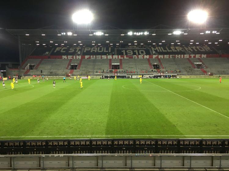 So verwaist, wie hier die Tribünen des Millerntor-Stadions des Fußball-Zweitligisten FC St. Pauli, werden auch die Sportstätten in Japan während Olympia sein. Foto: Johannes Speckne