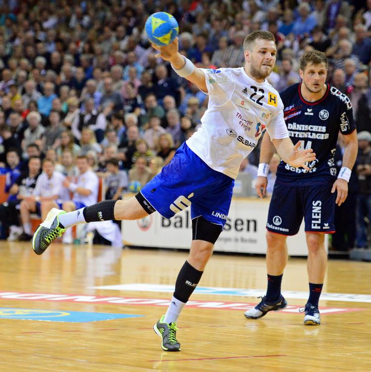 Dirk Holzner in der Saison 2015/2016 mit dem ThSV Eisenach im Punktspiel der DKB Handballbundesliga in Flensburg (Foto: sportfotoseisenach)