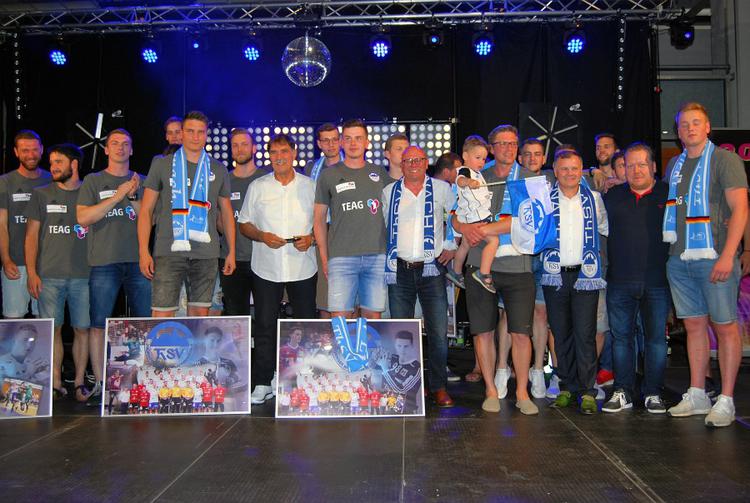 Aufstiegsmannschaft und das Team um das Team bejubelt