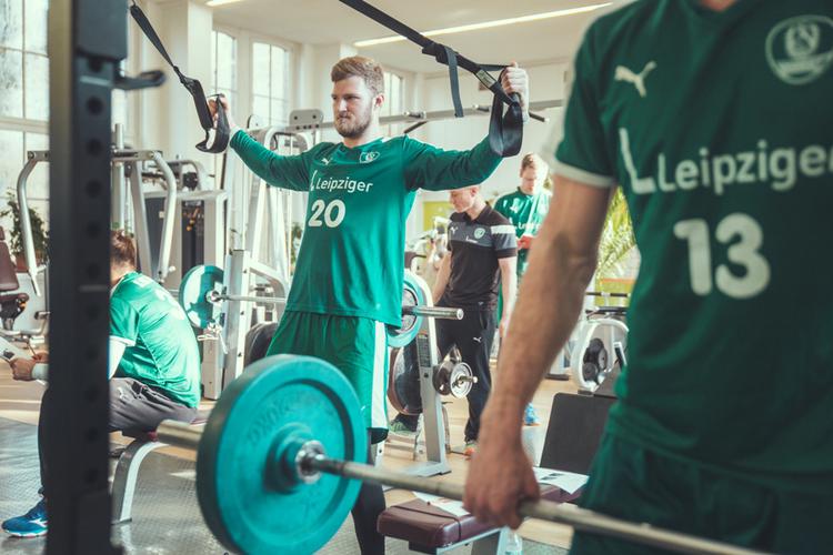 Nationalspieler Philipp Weber ist zurück im DHfK-Training. Die Mannschaft absolvierte am Dienstag die Krafteinheit im Fitness- und Gesundheitszentrum des SC DHfK Leipzig. Foto: Florian Pappert