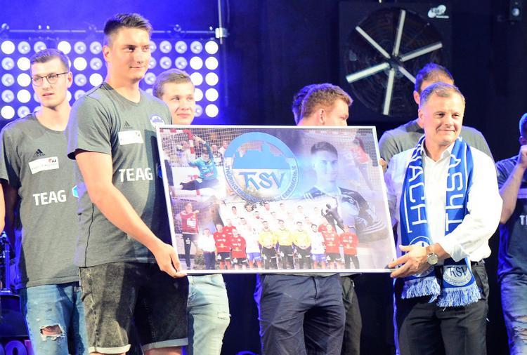 Während einer von vielen Emotionen geprägten Aufstiegsfeier im festlichen Rahmen wurden sechs Spieler des Aufstiegsteams verabschiedet. Torhüter Sebastian Brand (22 Jahre), und Feldspieler Jonas Bogatzki (21) wechseln zum Thüringenliga-Meister HSV Bad Blankenburg, Torhüter Lars Kremmer (20) zum Thürngenligateam der HSG Werratal, seinem Heimatverein, Kapitän und Rückraumspieler Marcel Schliedermann (28) sucht bei Zweitbundesligst TV Emsdetten eine neue sportliche Herausforderung. Welches Trikot sich Linkshänder Jonas Richardt (22) sich demnächst überstreift, ist noch offen. Daniel Luther (31) beendet nach nahezu 22-jähriger Vereinszugehörigkeit seine leistungssportliche Kariere.