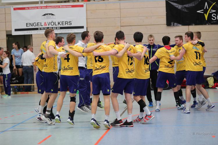 Superball-Jubel bei der U23 der HSG Konstanz: Mit dem achten Sieg in Folge rückte die Stocker-Equipe auf den zweiten Platz vor und auf einen Punkt an Tabellenführer Hofweier heran. (Foto: Peter Pisa)