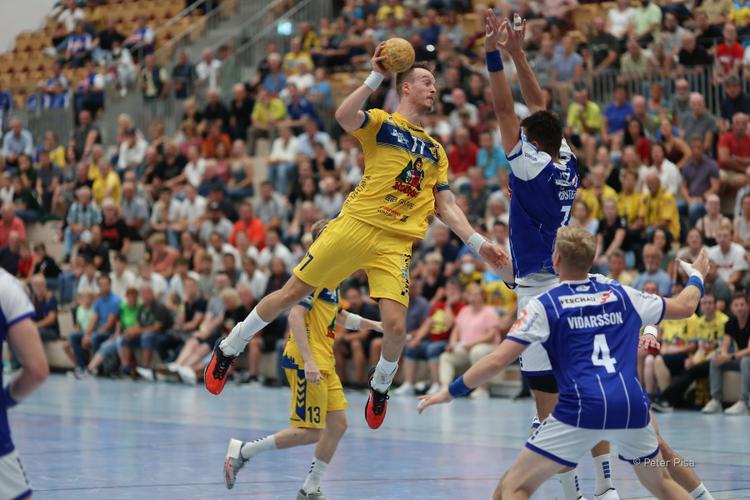 850 Fans waren trotz Urlaubs- und Ferienzeit – in Baden-Württemberg enden die Sommerferien erst am 12. September – in die Schänzle-Hölle gekommen. Aktuell deutlicher Bestwert in der gesamten 1. Runde des DHB-Pokals. Die, die gekommen waren, bekamen einen packenden Pokalabend geboten, der erst in der zweiten Hälfte so richtig Fahrt aufnahm. Als die Schänzle-Hölle wieder zum Hexenkessel avancierte und die HSG drauf und dran war, jenen Stress und Druck beim Gegner zu erzeugen, den sich der Ex-Gummersbacher Jörg Lützelberger mit den Gelb-Blauen gewünscht hatte. Der 37-Jährige hatte offenbar in der Kabine die richtigen Worte und Anpassungen gefunden. War seiner jungen Mannschaft, die ohne die beiden Verletzten Janis Boieck und Jo Knipp auskommen musste, zu Beginn noch etwas der Respekt und die Nervosität anzumerken – bestraft durch den VfL mit einer kalten Dusche und einem 0:4-Rückstand nach nicht einmal ganz vier Zeigerumdrehungen – so trat die HSG in den zweiten 30 Minuten voll auf Augenhöhe auf und sorgte für einen packenden Pokalkampf, der die frenetisch mitgehenden Zuschauer immer wieder zu stehenden Ovationen mitriss.