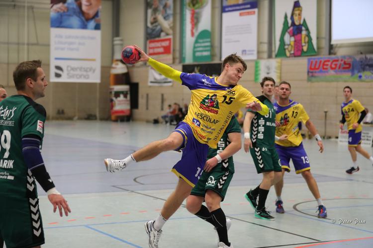 „Die Zusammenarbeit von Abwehr und Torwart war super“, lobte dagegen HSG-Cheftrainer Daniel Eblen. „Wir konnten so mit viel Tempo nach vorne gehen, haben wenige Fehler gemacht und durch unsere Geschwindigkeit den Gegner auch physisch gefordert.“ Denn Paul Kaletsch, Fabian Wiederstein und Felix Krüger lieferten sich vorne ein Wettschießen und waren hochkonzentriert und effizient. Gerade die Achse Jud-Wiederstein-Kaletsch-Krüger war auch dieses Mal für das eine oder andere Highlight zu haben. Mit herrlichen Zuspielen an den Kreis wurde Wiederstein gefüttert, der wiederum ließ sich in unnachahmlicher Art erneut selbst von drei Gegenspielern nicht stoppen. Eblen: „Wenn Felix mit 100 Prozent in die Würfe geht und nicht so viel überlegt, ist er schwer zu verteidigen.“ Das Extralob hatte sich der Linkshänder nach bärenstarker Vorstellung ebenso verdient wie die beiden Keuper der HSG und die komplette Mannschaft.
