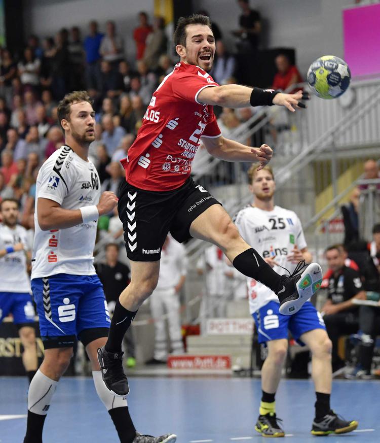 Am 10. Februar startet der ASV in den zweiten Teil der Meisterschaft beim EHV Aue - hier eine Szene aus dem Hinspiel mit ASV-Toptorschütze Vyron Papadopoulos. - Foto: Wegener ASV