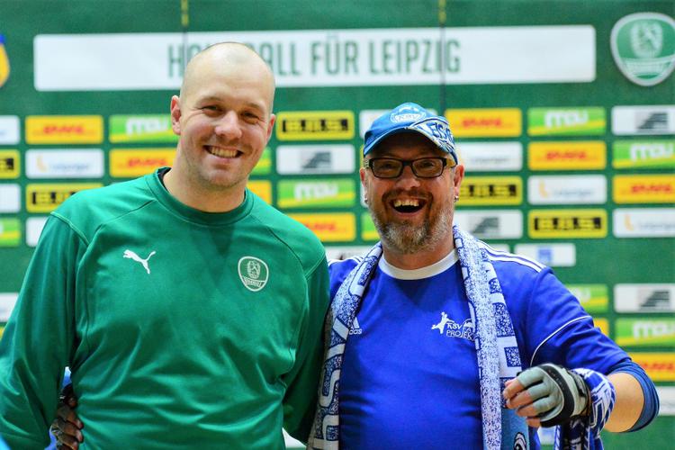 Andreas Nositschka (li.) nach dem Hinspiel mit ThSV-Fan Frank Schlosser - Foto: sportfotoseisenach
