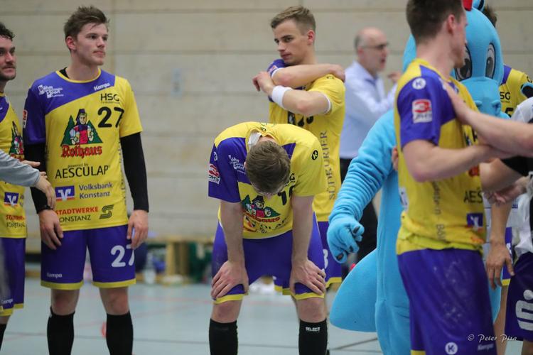 Das lag an einem erneut überaus kaltschnäuzigen und effektiven Auftritt der Gäste, aber auch der hohen Anzahl an technischen Fehlern und frei vergeben Möglichkeiten der Gelb-Blauen mit etlichen Pfosten- und Lattentreffern. „Wir haben gesehen“, gestand Daniel Eblen zerknirscht, „dass uns zu Teams wie Eisenach noch etwas fehlt. Sie waren die bessere Mannschaft und steigen verdient auf. Bei aller Enttäuschung muss man das einfach akzeptieren“ Kleine Dinge hatte der Cheftrainer der Konstanzer dafür als Gründe ausgemacht, die allerdings eine wichtige Rolle bei der Entscheidung spielten. „Wie unaufgeregt Eisenach in wichtigen Situationen, wie kaltschnäuzig sie waren, die Geduld bis zum Ende des Zeitspiels durchzuspielen“, so Eblen, „das war der Unterschied.“ Sechs Tore seien aus solchen Situationen in den beiden Spielen für die Gäste gefallen. „Wir werfen den Ball nach zwei Pässen halbherzig am Tor vorbei“, war er enttäuscht. „Das hat große Auswirkungen.“ Zumal, so Eblen, gegen einen Gegner, der „über einen unglaublichen Erfahrungsschatz und von Spielern über Trainer aus absoluten Könnern besteht.“