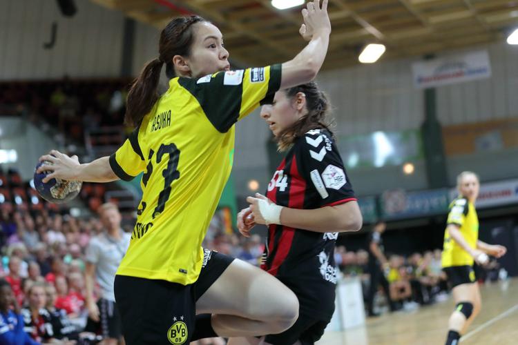 Die BVB Handball Damen müssen nach dem 21:23 (8:9) beim TSV Bayer 04 Leverkusen weiter auf den ersten Saisonsieg warten. Während es zum Auftakt gegen Göppingen noch den Ausgleich in letzter Sekunde für den BVB gegeben hatte, waren es am vergangenen Sonntag die Leverkusenerinnen, die den letzten Treffer der Partie und damit die Entscheidung zu ihren Gunsten bejubeln konnten. Zuvor hatten die Zuschauer in der Ostermann-Arena eine spannende Schlussphase erlebt, in dem es den Schwarzgelben nicht gelang, selbst einmal in Führung zu gehen. Generell lief das Team von Trainer Norman Rentsch bis auf die 1:0-Führung zu Beginn dauerhaft einem Rückstand hinterher. „Uns fehlt momentan ein wenig das Glücksmoment“, bemängelte Rentsch nach der Partie. Ein solches wäre sicherlich eine Führung in der engen Schlussphase gewesen – und nach Vaszaris Ausgleich zum 20:20 (54‘) lag diese auch durchaus in Reichweite. Doch es gelang den Dortmunderinnen nicht, den Ball noch einmal zu erobern und daraus Kapital zu schlagen: Amelie Berger traf von Rechtsaußen, im Gegenzug verwandelte Huber einen Siebenmeter. Dann machte der BVB zwar hinten dicht, schenkte jedoch im eigenen Angriff den Ball her und es war abermals Berger, die ihre Farben per Tempo-Gegenstoß in Führung brachte (21:22, 58‘). Den Gästen, die sich jedes Tor gegen die massive Leverkusener Deckung hart erarbeiten mussten, lief so langsam die Zeit davon. 90 Sekunden vor dem Schlusspfiff nahm Rentsch seine letzte Auszeit und brachte die siebte Feldspielerin. Trotz der Überzahl konnten seine Schützlinge keinen Treffer mehr erzielen, sodass ein Punktgewinn eine halbe Minute vor Schluss bei Leverkusener Ballbesitz in weite Ferne rückte. Zwar gelang es, mit einer offensiven Deckung Zeitspiel zu provozieren, doch die „Werkselfen“ taten dem BVB nicht den Gefallen, in Hektik zu verfallen, sodass die 30 Sekunden souverän heruntergespielt wurden – Bruggemanns Treffer fünf Sekunden vor Schluss machte dann alles klar. Daran, dass es überhaupt zu einer engen Schlussphase kommen könnte, sah es Mitte der zweiten Halbzeit nicht aus: Leverkusen machte den Laden hinten dicht und kam vorne zu seinen Abschlüssen. Als die starke Nele Kurzke in der 44. Minute nach einer Dortmunder Auszeit, nach der die Schwarzgelben die siebte Feldspielerin brachten, ins leere Tor traf, stand es 14:18 aus BVB-Sicht. Doch die Dortmunderinnen bewiesen Moral und holten Tor um Tor auf. Auffällige Protagonistinnen in dieser Phase waren zwei neue Gesichter: Yara ten Holte hielt in dieser Phase richtig stark und vorne netzte der japanische Neuzugang Asuka Fujita zuverlässig. Zudem zeigte sich Rentschs Team im Deckungsverbund stabiler und spielte zielstrebig nach vorne. „Wir haben in der Abwehr ganz gut reingefunden, hatten leider im Angriff nicht so den Zugriff. Es gelingt uns nicht, in Führung zu gehen – das wäre ganz, ganz wichtig gewesen“, resümiert Rentsch die Partie. Sein Gegenüber Robert Nijdam zeigte sich zufrieden mit der Leistung seiner Schützlinge: „Es war schon ein Nervenspiel. Aber wir haben immer weiter gekämpft und am Ende verdient die Punkte geholt.“ BVB: Woltering, ten Holte, Duijndam – Månsson, Grijseels (7/6), Weisheitel, C. Müller (3), Einarsdóttir, Stockschläder, van Kreij (2), Huber (1/1), Mack, Fujita (4), Wulf, Bleckmann (1), Vaszari (3). Quelle: PM BVB Handball