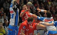 Zweimal Vasilakis, Klitgaard und Tellander brachten die MT zum 12:12-Ausgleich (23.). Nun kam Domagoj Duvnjak für den wenig effektiven Guillaume Gille als Spielmacher, doch auch das brachte zunächst keine echten Vorteile. Zweimal Matthias Flohr von Außen, zweimal der direkte Ausgleich durch einen Siebenmeter von Nenad Vuckovic und Thomas Klitgaard vom Kreis. Der Favorit schaffte es einfach nicht, sich zu lösen. Nicht einmal zur Halbzeitführung sollte es reichen - trotz Überzahl nach einer Strafe gegen Dimitrios Tzimourtos und einem Strafwurf von Hans Lindberg. Denn den parierte der hereingenommene Robert Lechte reaktionsschnell und hielt Rot-Weiß auf Augenhöhe (15:15, 30. Min.).