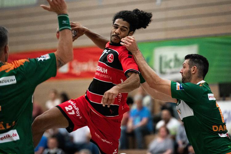 Neuzugang André Gomes – hier gegen den Ex-Melsunger Felix Danner – gab einige Kostproben seines Könnens (Foto: Alibek Käsler)