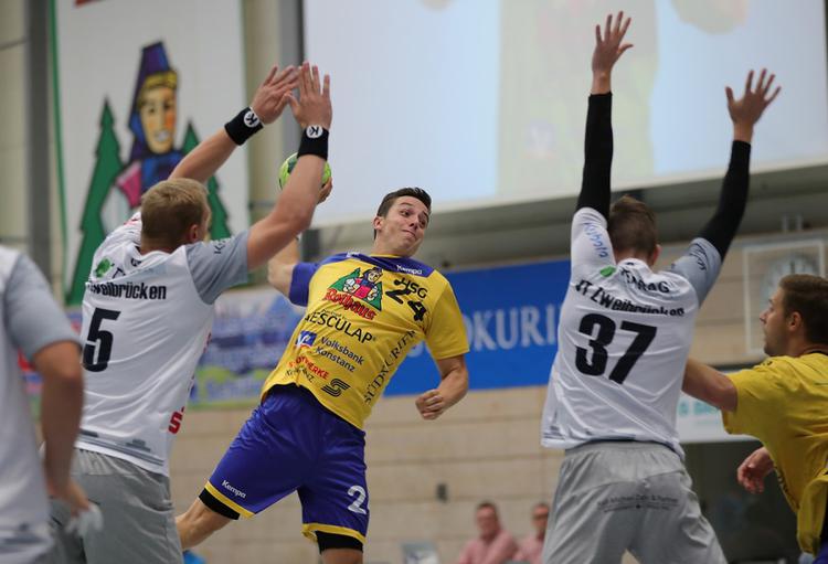 Stattdessen gab er seinen Vorderleuten Sicherheit, welche sich nun langsam wieder formiert hatten. Felix Krüger besorgte mit einem Doppelschlag die 6:5-Führung. Feiertagsmüdigkeit, ungewohnter Spieltag und sehr unbequemer Gegner: All das war nun langsam im Griff. Wenn auch Trainer Daniel Eblen festhielt: „Beim Gegner war schon einiges an Qualität dabei. Gerade mit den Würfen aus dem Rückraum.“ So erspielte sich Konstanz zwar leichte Feldvorteile, konnte die optische Überlegenheit aber (noch) nicht in mehr als einen 13:11-Vorsprung zur Halbzeit nutzen. Denn wenn sich bei der HSG eine Lücke auftat oder wieder eine der kleinen Nachlässigkeiten oder überhasteten Aktionen einschlich, dann war Zweibrücken sofort zur Stelle.