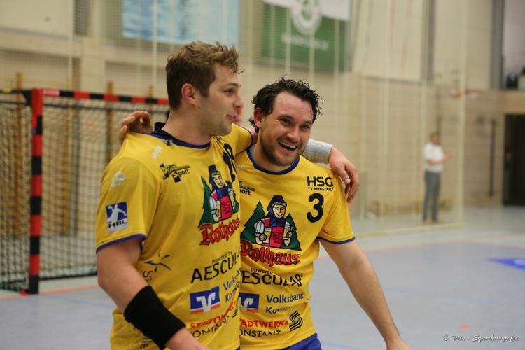 Wollen am Samstagabend wieder jubeln und mit der HSG Konstanz auf einem Nichtabsteigsplatz rangieren: Chris Berchtenbreiter und Fabian Schlaich. (Foto: Peter Pisa)