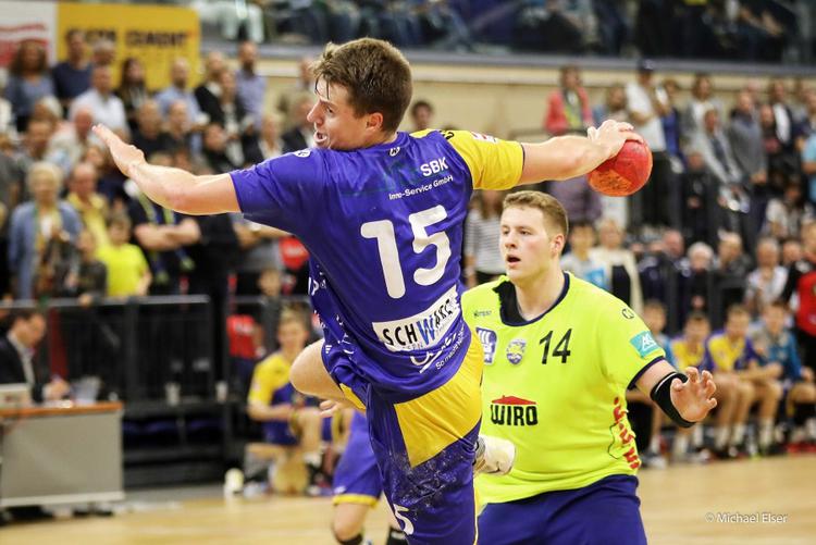 Wurf ins Glück: Ausgleich zum 31:31 in Rostock durch Paul Kaletsch.