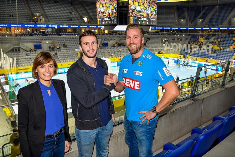 von links nach rechts: Löwen-Geschäftsführerin Jennifer Kettemann, Romain Lagarde und Oliver Roggisch, Sportlicher Leiter der Rhein-Neckar Löwen. Foto: RNL / Binder