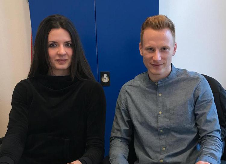 Valeria Gorelova bei der Vertragsunterzeichnung mit Kai Stettner von der Geschäftsstelle der NSU
