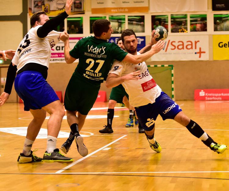 t Emotionen auf dem Parkett, den Wechselspielern auf der Bank und dem Betreuerteam“, strahlte der vom Co- zum Cheftrainer beförderte Arne Kühr und ergänzte, „jeder brachte seine Qualitäten in den Gesamterfolg ein“. Die Ein- und Auswechslungen das Trainerduos Kühr/Kühr erwiesen sich als Volltreffer. Duje Miljak kam für Alexander Saul in der Abwehr. Die zu Beginn der zweiten Halbzeit gekommenen Marcel Popa und Nicolai Hansen sowie der im rechten Rückraum für Furore sorgende Alexander Saul waren die Protagonisten zur erneuten 5-Tore-Führung (18:13, 35.). Selbstbewußt dominierten die Eisenacher das Vier-Punkte-Spiel. Stanislaw Gorobtschuk parierte als Sahnehäubchen zwei Siebenmeter (37./47.). Das Torhüterduell ging klar an das Eisenacher Duo Redwitz/Gorobtschuk. Angriffszüge zu beide Außen (Weyhrauch, Wöhler), Kombinationen zum Kreis (Niemeyer, Hansen) und Torgefahr aus dem Rückraum (Gerlich, Saul), dazu das Marschieren von Marcel Schliedermann in die Nahtstellen der gegnerischen Abwehr, der Eisenacher Positionsangriff wartete facettenreich auf. Beim Gastgeber nahm, mit Blick auf die sich anbahnende Heimniederlage, die Verunsicherung zu. Eisenachs Matthias Gerlich bediente zunächst Adrian Wöhler, ließ dann gleich dreifach das Leder im Saarländer Kasten zappeln. Beim 25:17 (55.) war der Doppelpunktgewinn in trockenen Tüchern. „Entscheidend, wir verwandelten vor der Pause einen 7:9-Rückstand in eine 15:10-Führung um“, betonte Arne Kühr.