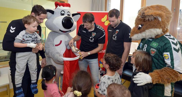 Die Füchse Berlin waren am Donnerstag zu Gast im Vivantes Klinikum im Friedrichshain und statteten der Kinderstation einen Besuch ab. Große Freude gab es bei den rund 20 Kids als Silvio Heinevetter, Petr Stochl und Steffen Fäth Geschenke verteilten. Auf diesen Besuch hatten sich die Füchse-Profis lange gefreut. „Es gibt nichts Schöneres, als in glückliche Kinderaugen zu blicken“, sagt Füchse-Torwart und zweifacher Familienvater Petr Stochl. Zusammen mit Steffen Fäth (ebenfalls Vater zweier Kinder) und Silvio Heinevetter schaute der Kapitän der Berliner auf der Kinderstation im Klinikum Friederichshain in der Landsberger Allee vorbei. Als die Handball-Profis den großen Raum betraten, machten die Kinder große Augen. Sofort zeigten sie großes Interesse, ließen sich Wurftechniken erklären und Tipps fürs Leben geben. Fuchsi und Vivo, die beiden Maskottchen der Füchse und von Vivantes, waren ebenfalls dabei und rundeten den tollen Tag für die Kinder im Alter von drei bis neun Jahren ab. Fäth, der zusammen mit Heinevetter und Stochl Geschenke wie unter anderem Freikarten für ein Heimspiel verteilte, sagte: „Es ist ein schönes Gefühl, wenn man Kindern eine Freude machen kann.“ Quelle: PM Füchse Berlin