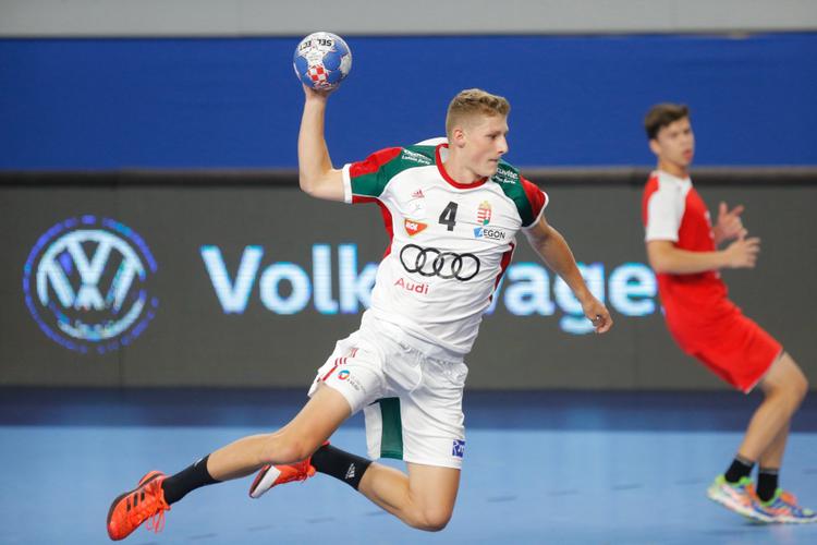 Áron Czakó fliegt für die ungarische Jugend-Nationalmannschaft (hier bei der U18-EM), ab Sommer auch für die HSG Konstanz. Bild: Ungarischer Handball-Verband