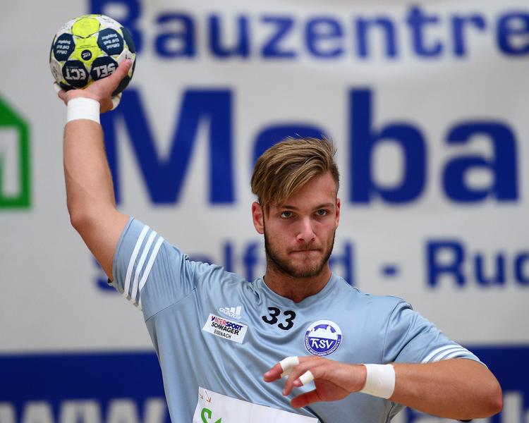 Kreisspieler Justin Mürköster (beim Torwurf im Testspiel gegen den HSV Bad Blankenburg)