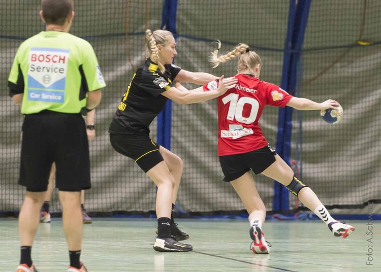 Die Dortmunder Rückraumschützin Nadja Månsson (links) in der Abwehr. (Quelle: A. Schwarz)
