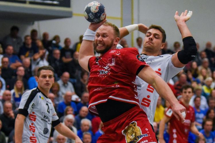 Benjamin von Stein (links), hier gegen Yaron Pillmann von der HSG Hanau, tritt zukünftig kürzer. Foto: Imago Images / Patrick Scheiber