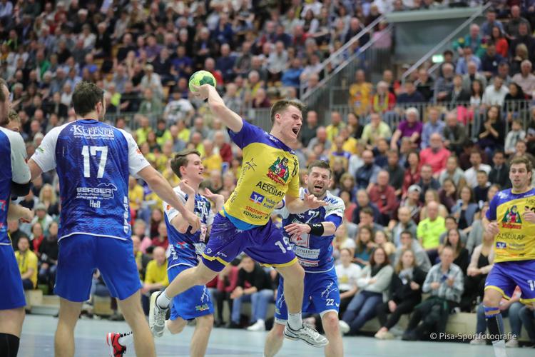 Die 38. Spielminute war gerade angebrochen, da kam der eigentliche Höhepunkt des Spiels. Paul Kaletsch traf zum mit einem langen Wurf aus der eigenen Spielhälfte zum 20:14 und sorgte für Ekstase auf den Rängen. Mit seinem 1 000. Tor für die HSG Konstanz krönte er – vorläufig – seine erneut beeindruckende Leistung, kam am Ende gar auf elf Treffer und läutete den Sieg mit seinen Toren und sehenswerten Anspielen auf Fabian Wiederstein ein. Dafür wurde er wenig später noch einmal mit Sonderapplaus bedacht, klopfte sich dabei auf das HSG-Logo auf der Brust und war sichtlich berührt von den stehenden Ovationen. „Das war schon ein rührender, bewegender Moment“, meinte er später, immer noch emotional aufgewühlt. „Das ging mir schon nahe und alles noch einmal durch den Kopf“, so der derzeit beste Torschütze der 3. Liga Süd nach knapp sechs Jahren im HSG-Trikot.