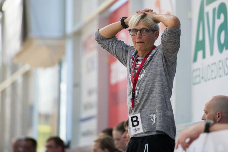 Renate Wolf, Handball-Abteilungsleiterin von Bayer Leverkusen, erklärt den finalen Nichtantritt. Foto: Imago Images / Jacob Schröter
