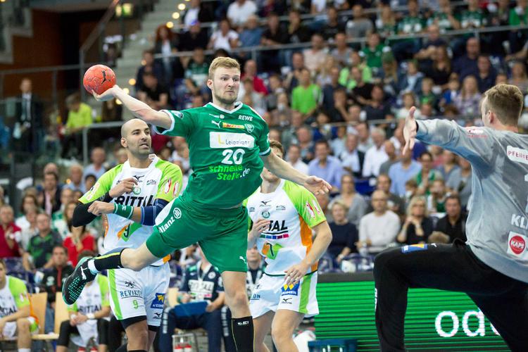 Zu Beginn durften die 3492 Handballfans in der Arena Leipzig mit dem Geschehen auf der Platte noch zufrieden sein. In der Anfangsphase hatten unter anderem Patrick Wiesmach drei Treffer und Franz Semper zwei Treffer geworfen und die grün-weißen Gastgeber mit 7:4 Toren in Führung gebracht. Obendrein waren die Gäste in dieser Phase durch eine Zeitstrafe von Anton Lindskog in Unterzahl geraten. Trotzdem schafften die Hessen den Ausgleich und die Führung. „Wir waren in einigen Szenen des Spiels irgendwie nicht da!“ schätzte Niclas Pieczkowski nach dem Spiel selbstkritisch ein. Jedenfalls konnten sich dadurch die Gastgeber nicht – wie allseits erhofft – absetzen. Zur Pause lagen die Sachsen, die wieder von André Haber gecoacht wurden, mit 13:12 Treffern denkbar knapp vorn.