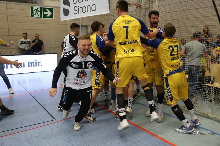 Ganz selten trat Kapitän Tim Bornhauser in seiner erfolgreichen Handball-Karriere zum Punkt. Doch nachdem HSG-Topscorer Lukas Köder schon nach knapp sechs Minuten nach einem Gesichtstreffer beim Strafwurf gegen Lefan Rot gesehen hatte und danach auch Aron Czako gescheitert war, übernahm der Schweizer. Drei von drei hatte er zuvor an diesem Abend schon verwandelt. Nun hatte der Anführer alles in der Hand. Alles oder nichts. Letzter Wurf des Spiels, letzter Wurf vor dem Karriereende mit erst 27 Jahren. Fynn Beckmann lächelte ihm zu. Bornhauser lächelte zurück. Täuschte kurz an, wählte den Aufsetzer und verwandelte die Schänzle-Hölle in ein Tollhaus. Mit weit ausgebreiteten Armen stand er nun da. Völlig ruhig. Mit diesem Lächeln im Gesicht. Sekundenbruchteile später wurde der Anführer von der Wucht der von der auf den Platz stürmenden Mannschaft und Fans niedergerissen. Nach keinem guten Spiel seines Teams schrieb zum Schluss einer wahnsinnig intensiven Spielzeit wieder einmal der Wille dieser Mannschaft das große Finale. Die HSG Konstanz kehrt damit als erster Club von 82 Drittligisten in die 2. Bundesliga zurück. Nach den zwei unglücklichen Niederlagen mit einem Tor gegen den WHV in der letzten Saison, die den trotz tollen Schlussspurts nur um einen Punkt verpassten Klassenerhalt kosteten, war das Glück des Tüchtigen dieses Mal auf Konstanzer Seite.