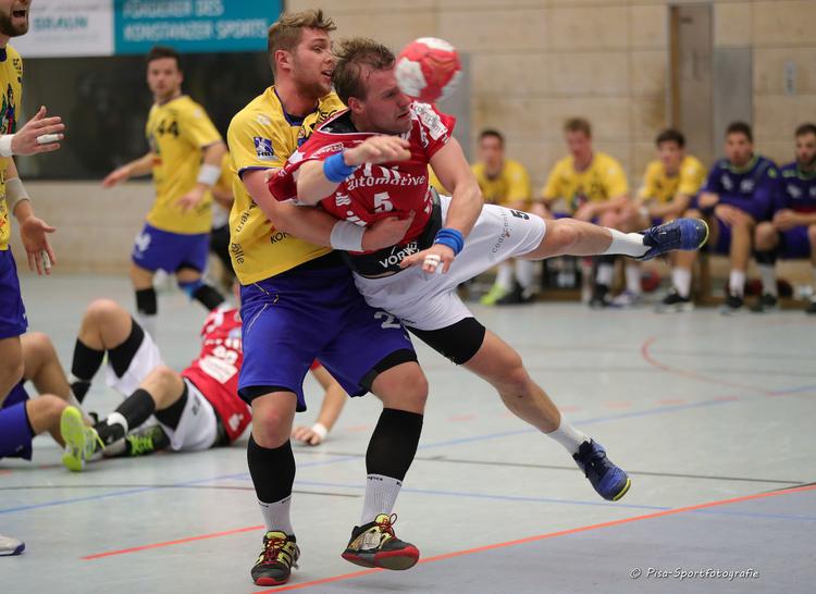 Kräftig zupacken müssen Chris Berchtenbreiter und die HSG Konstanz nach großer Deutschlandreise bei heim- und abwehrstarken Lübeckern. (Foto: Peter Pisa)