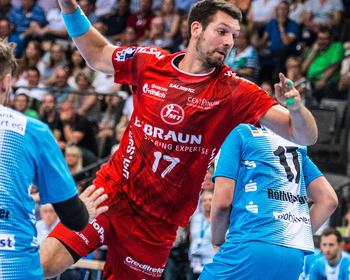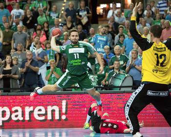 In der Kasseler Rothenbach-Halle, Heimspielstätte von Handball-Bundesligist MT Melsungen, jagd in …